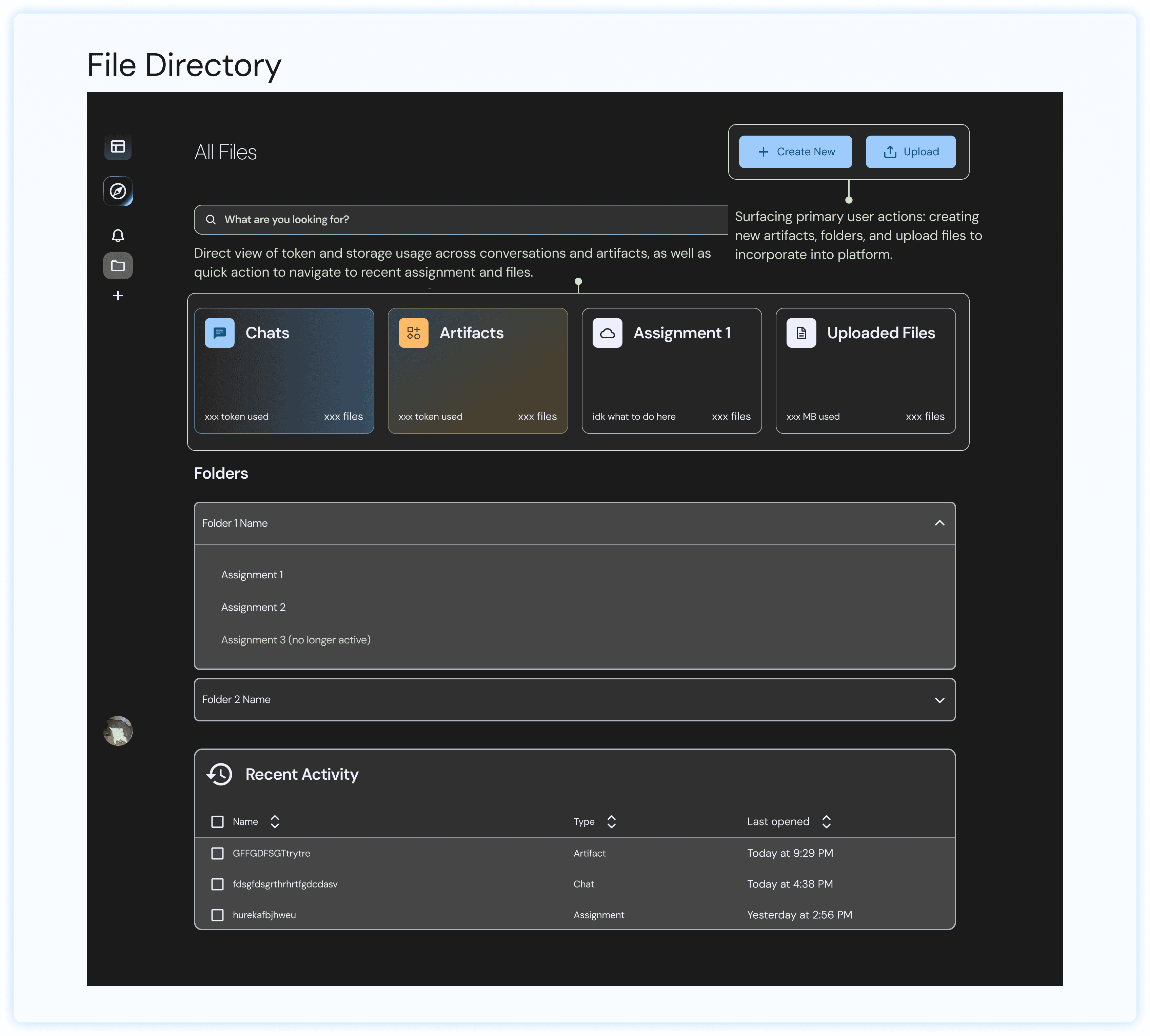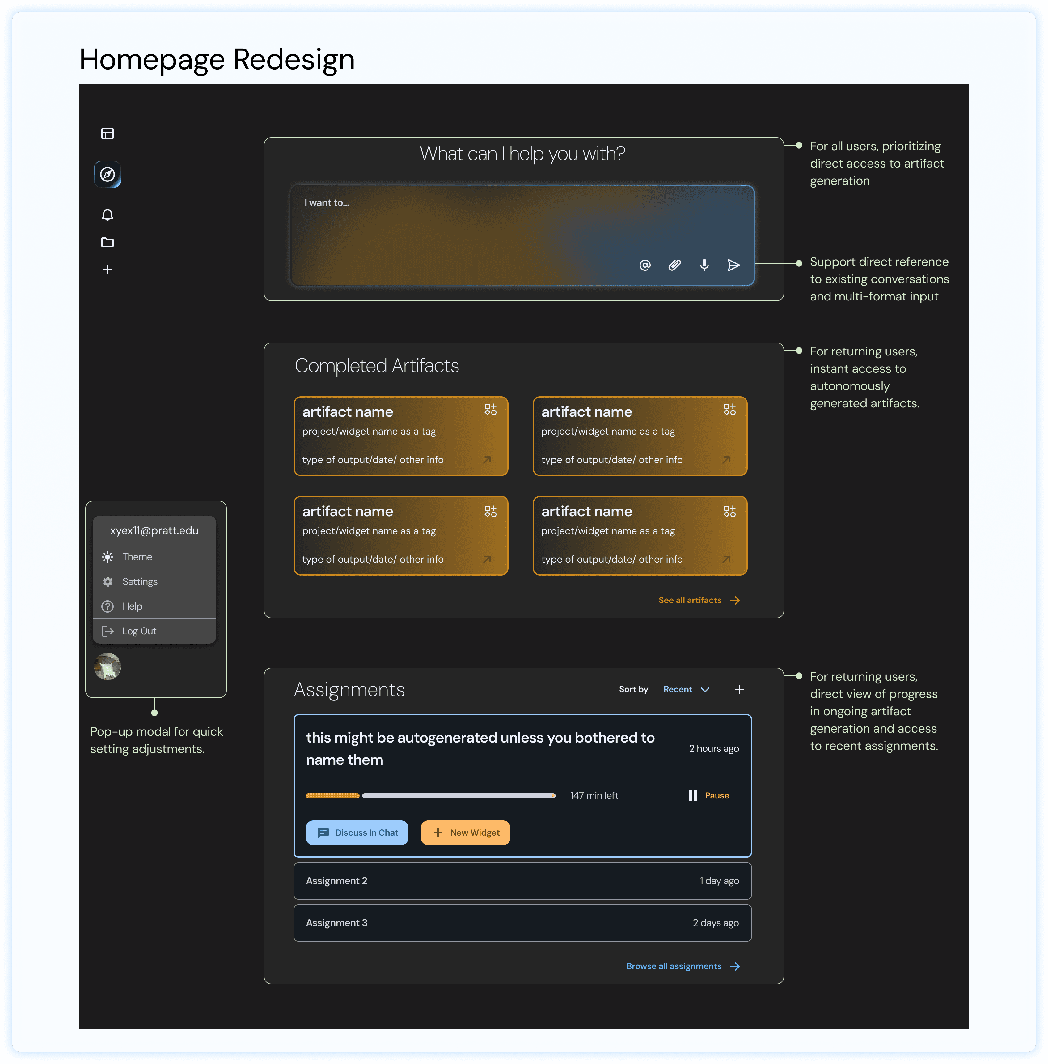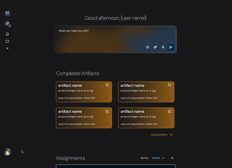 Parallel to UI kit and design pattern creation, we also produced high-fidelity prototypes for the two core user journeys: artifact creation via conversation and context-preserved editing upon return.